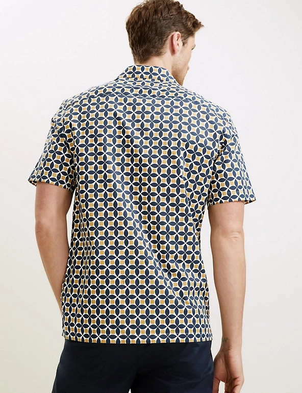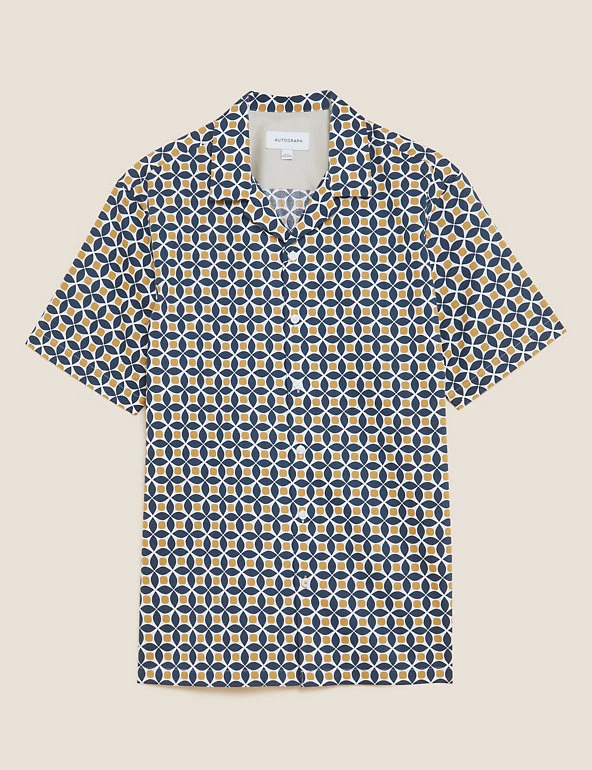 Add a pop of pattern to your smart-casual look with this cotton-rich geometric shirt from our Autograph range. Cut to a regular fit, this short-sleeved piece sports a contemporary revere collar and simple button fastening. Easy-to-iron fabric means that t