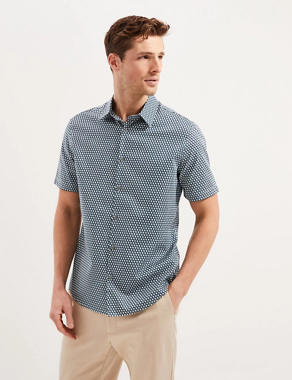 A striking geometric print lends a modern feel to this cotton-rich shirt from our Autograph range. It’s cut to an effortless regular fit and features a classic collared neck and short sleeves to keep you cool. Our easy-to-iron finish means this shirt just