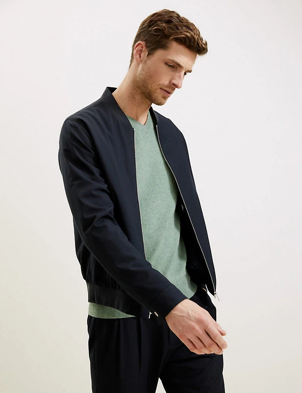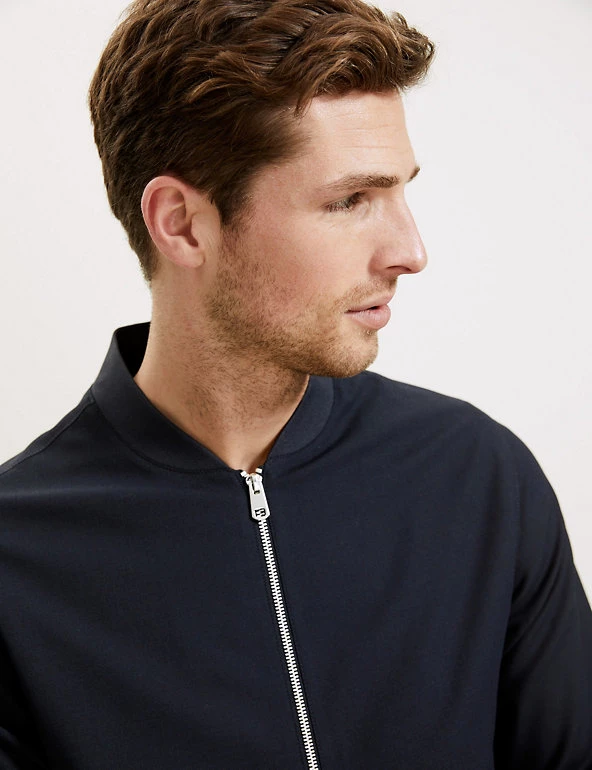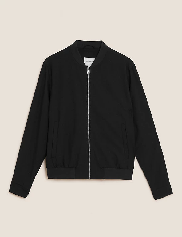Crafted with four-way stretch, this bomber jacket from our Autograph collection will keep you comfortable all day long. It’s cut to a sleek tailored fit. Side pockets are perfect for warming hands, while a shiny metal zip fastening adds a premium finish.