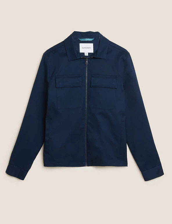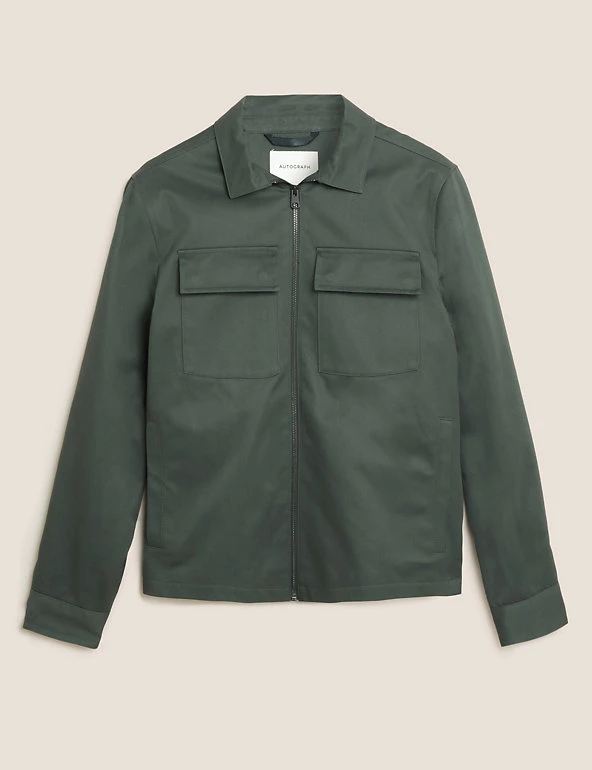 Look dapper while you’re out and about in this pure cotton Harrington jacket from our Autograph range. Designed in a regular fit, this smart long-sleeved piece features a sharp collar and easy zip fastening. A hint of stretch provides flexibility on the m