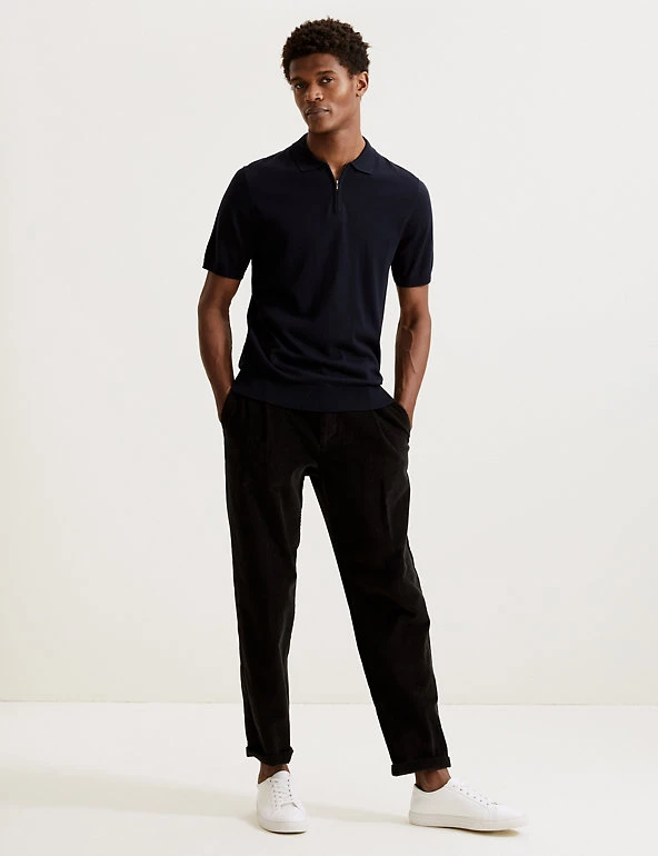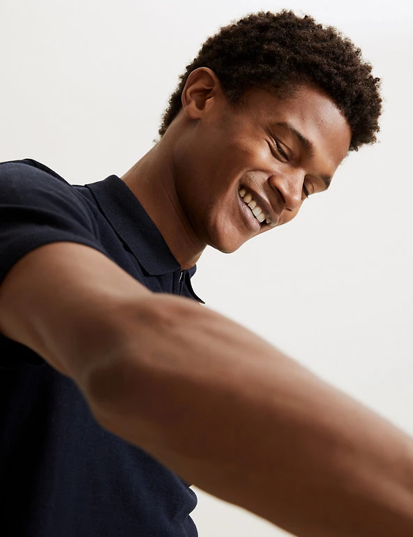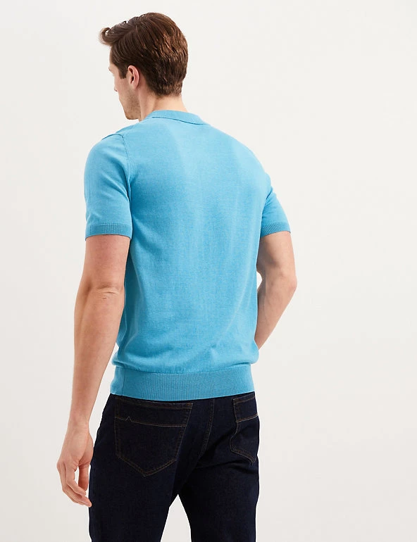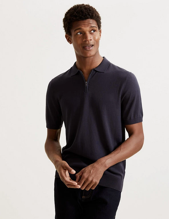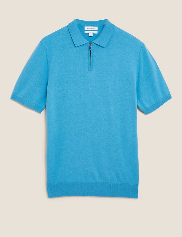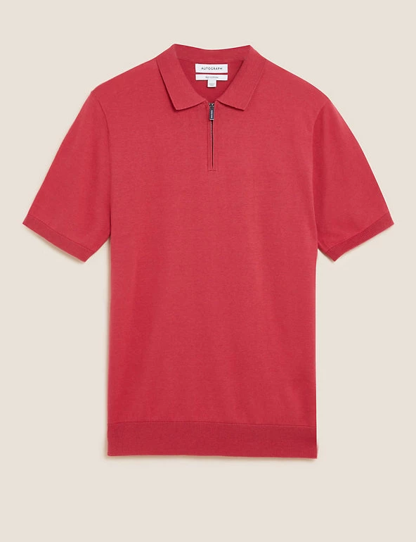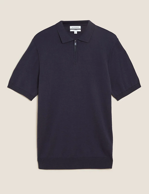 Crafted from a luxurious silk-rich fabric, this knitted polo shirt from our Autograph collection adds a sophisticated touch to your smart-casual wardrobe. It has a classic collared neck and short sleeves, with an effortless zip fastening.