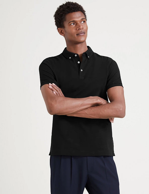 Elevate your polo shirt collection with this Autograph piece, crafted from pure premium cotton for a luxurious finish. It’s designed in a slick slim fit, with short sleeves and a classic button-down collar.