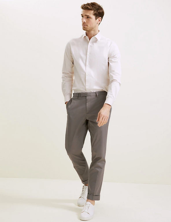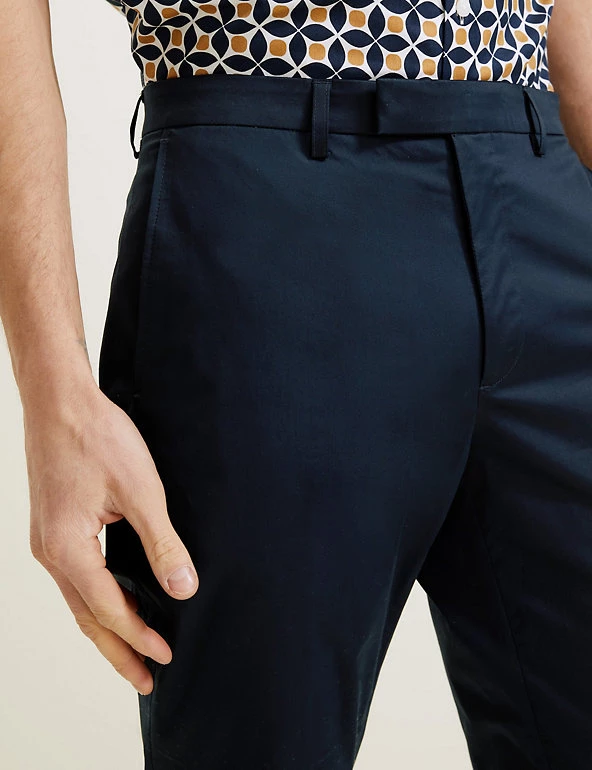 Effortlessly smarten up your look with these cotton-rich trousers from our Autograph collection. They’re cut to a sleek tailored fit with a modern flat front, and feature added stretch in the smooth sateen fabric for flexibility.