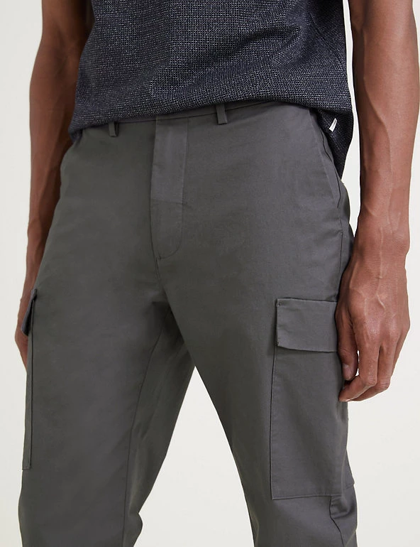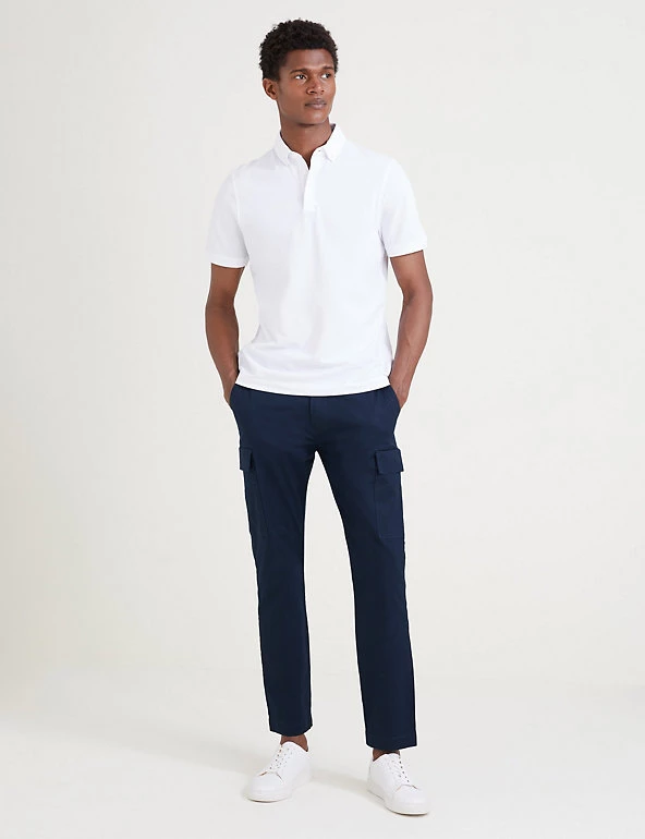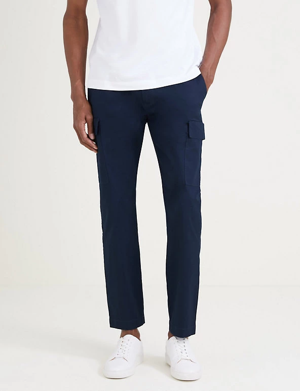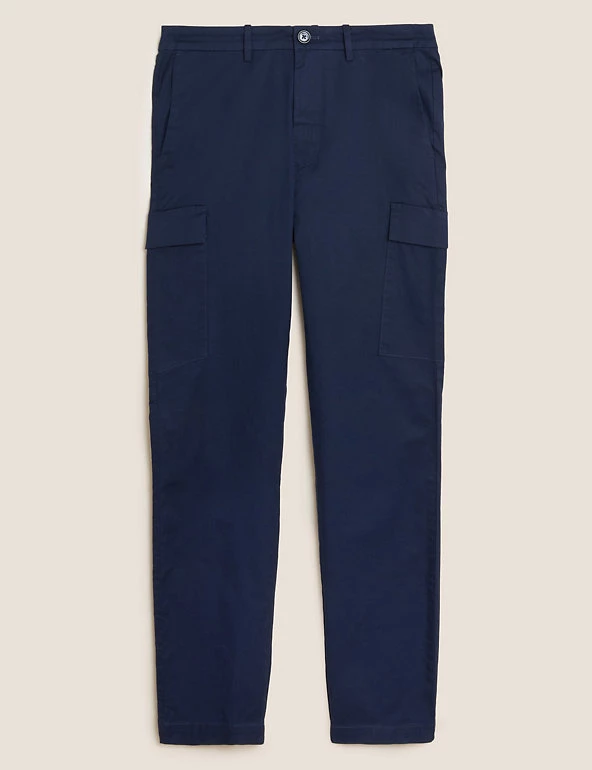 These cotton-rich cargo trousers from our Autograph range effortlessly balance smart and casual. They’re cut to a streamlined slim fit and feature added stretch for that extra bit of comfort. Flap pockets on both legs provide an authentic style. All of the cotton for our clothing is sustainably sourced and always will be.