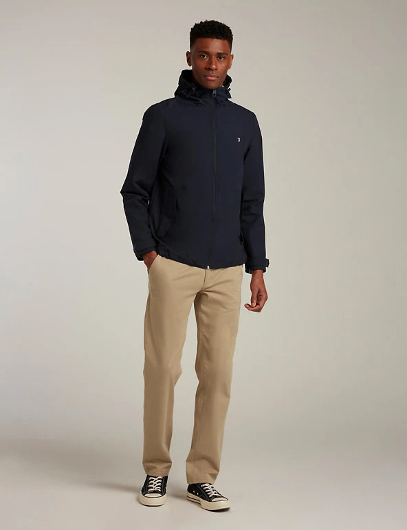 Both stylish and practical, this waterproof anorak from Farah is perfect for your commute or weekend walks. It’s crafted in a regular fit for comfortable wear and features a warm funnel neck for the colder months. A contrast hood lining gives this piece a sporty look, and it falls at the hip for easy layering. There’s plenty of space for on-the-move essentials in the two side pockets, while the zip fastening and wrist straps work to keep warmth in.