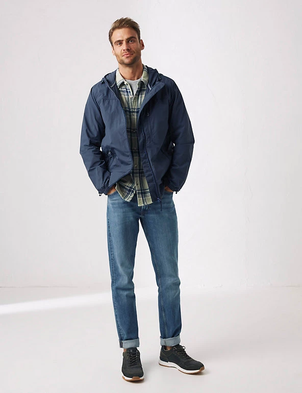This light mac from FatFace makes the perfect top layer in wet weather. It’s designed in a comfy regular fit with a collared neckline and contrasted zip fastening. The mac includes a hood with adjustable toggles and snug elasticated sleeve cuffs. Two zipped pockets at each side, plus one down the chest, make for practical additions.