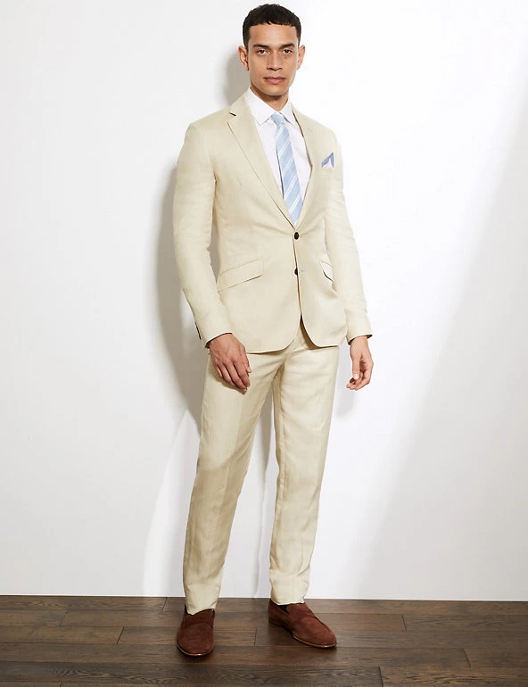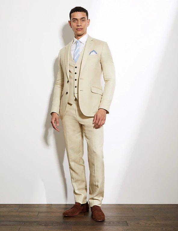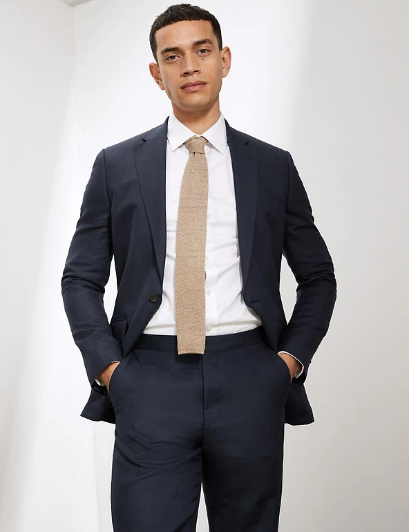 Master smart summer style with this silk and linen jacket from Jaeger. This slim fit jacket is cut from silk and linen cloth, sourced from Italian mill, Nova Fides. It’s designed in a classic single-breasted shape, with two contrast button fastenings and Jaeger bespoke straw-jacquard lining. The lightweight half-canvas design creates a more fluid shape. It’s finished with bound seams and Columbia stitch detail for a premium look, plus two vents at the back. An ideal choice for summer events and weddings.