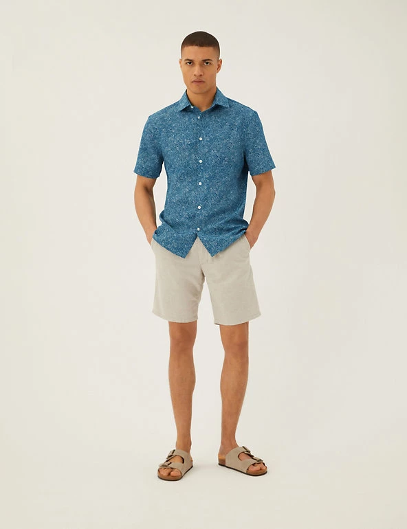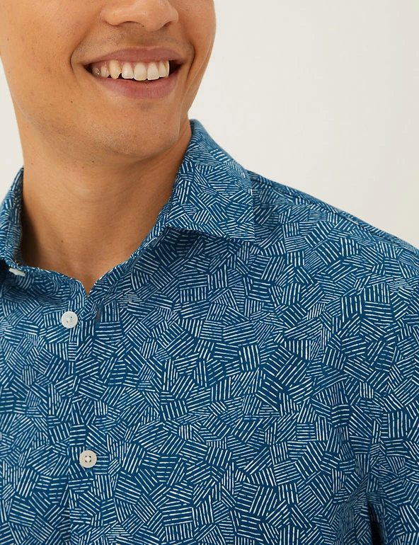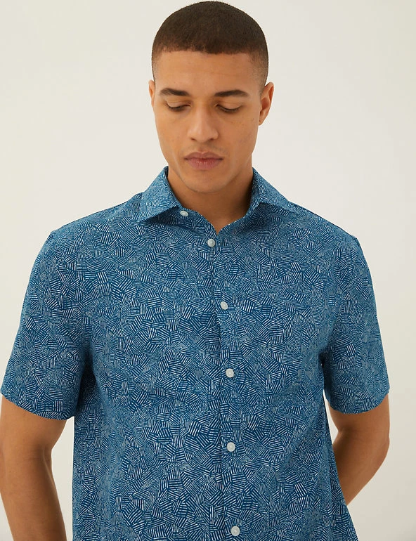 This classic shirt balances a laid-back look with a smart edge. Easy regular fit design, with a collared neck and breezy short sleeves. Geometric print adds a modern feel. You’ll be ready in an instant, thanks to our easy-to-iron finish. Made with recycled polyester.