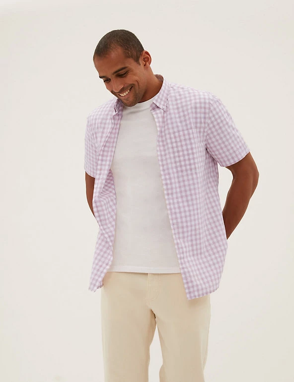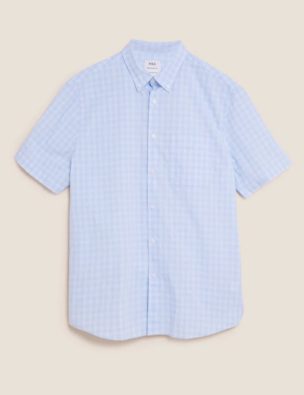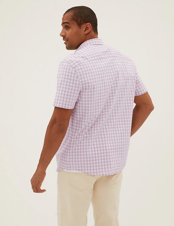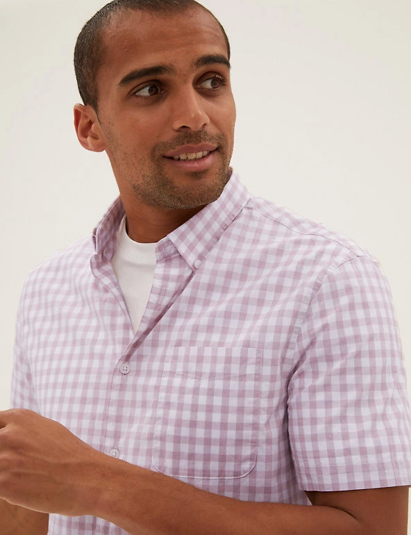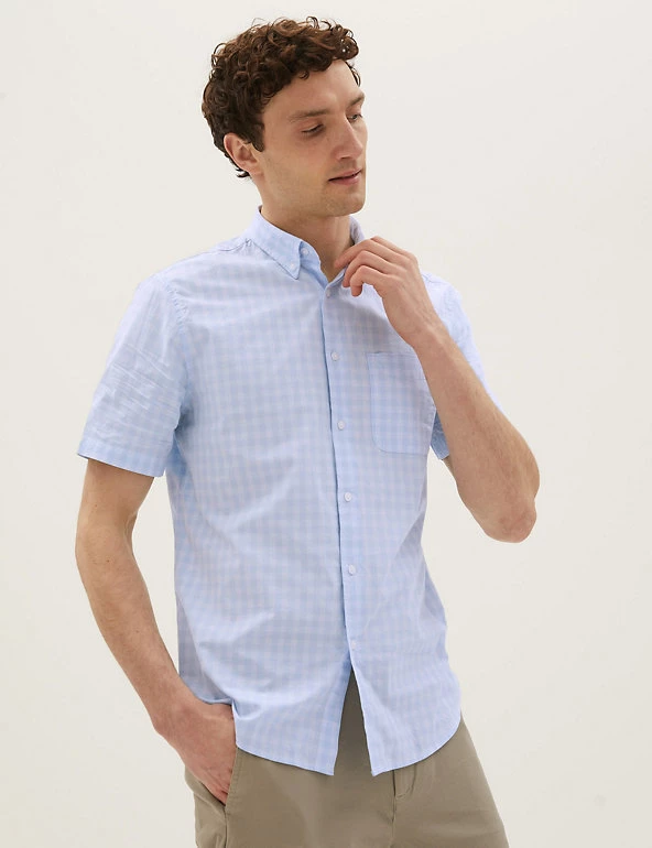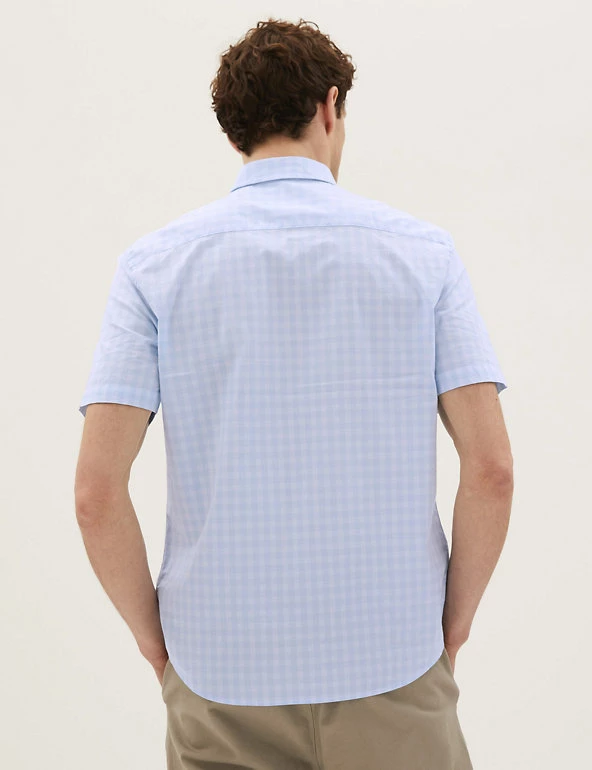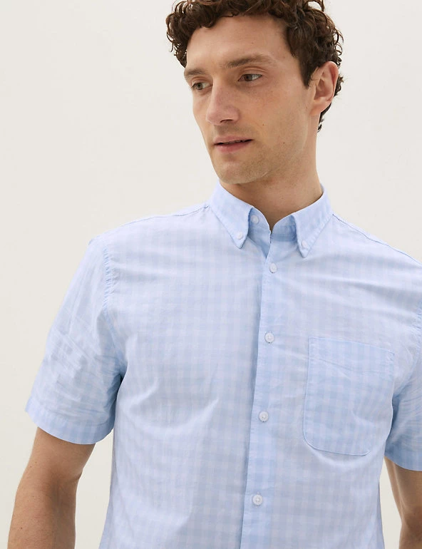 With its soft check print and short sleeve style, this pure cotton shirt is a great pick for sunny days. Comfortable regular fit, with a neat button-down collar. Easy-to-iron finish makes laundry a breeze. We only ever use responsibly sourced cotton for o