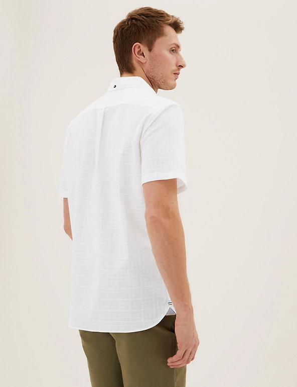 With its subtle overcheck pattern, this short-sleeved shirt will make a stylish addition to your wardrobe. Regular fit, with a classic collar. Made from breathable pure cotton with an easy-to-iron finish. We only ever use responsibly sourced cotton for ou