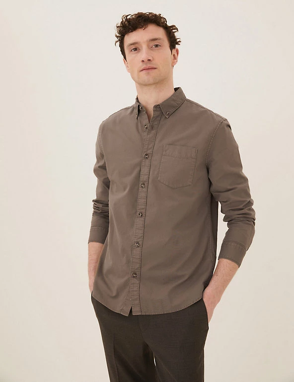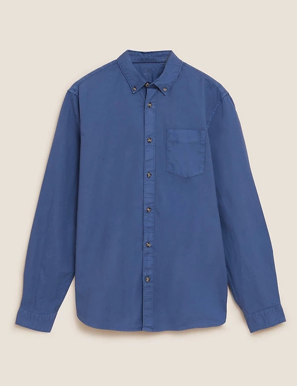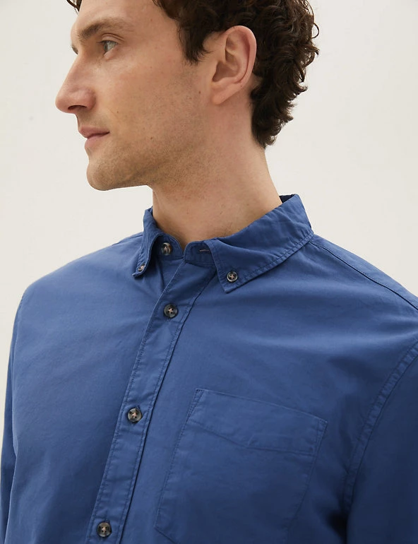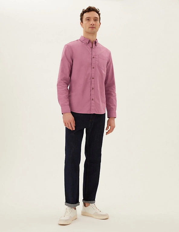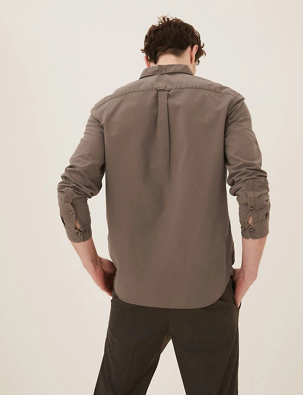 This pure cotton Oxford shirt will make a truly versatile addition to your casual wardrobe. It’s cut to a comfy regular fit with a button-down collar and a crisp box pleat at the back. The garment-dyeing process creates an authentic look, while an easy-to