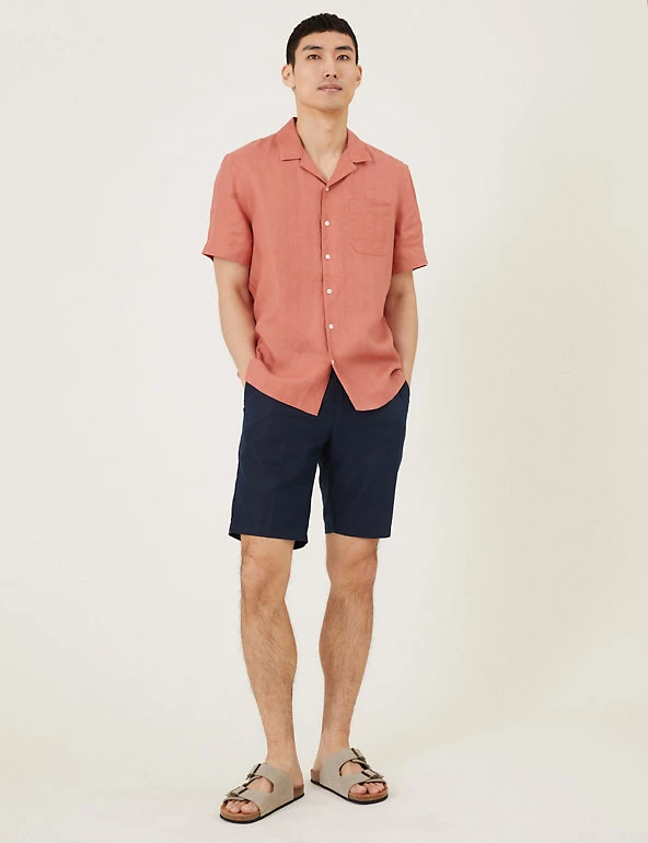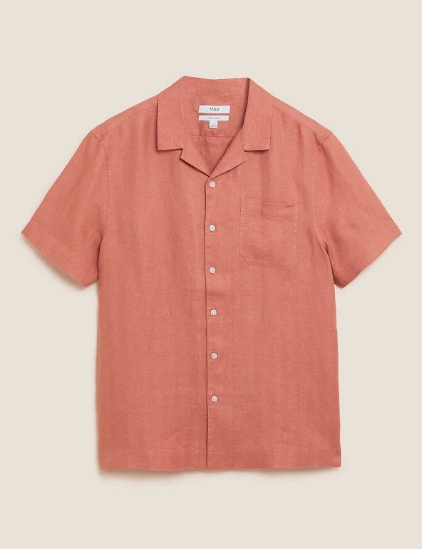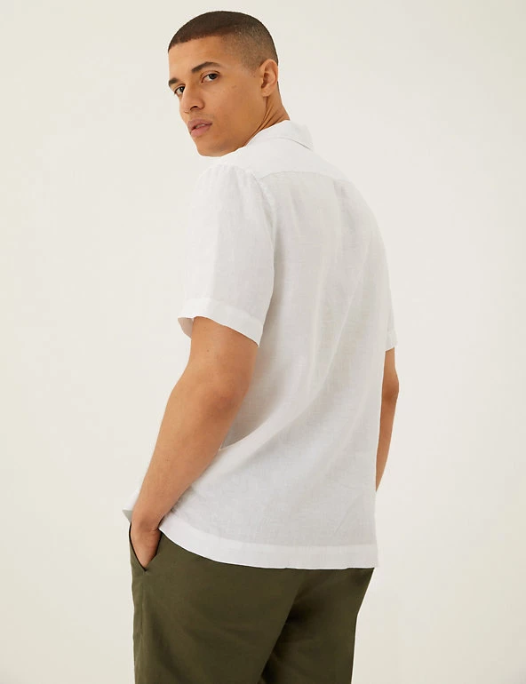 With its clean lines and sharp cut, this crisp pure linen shirt is full of contemporary charm. This versatile piece is designed in a regular fit and sports a modern revere collar, button-down fastening and breezy short sleeves. Our clever Cool Comfortâ„¢ technology helps to wick away moisture to keep you feeling fresh. Easy-iron fabric means all it needs is a quick press.