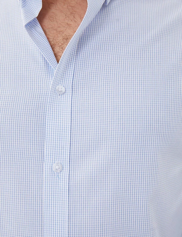 Update your workwear wardrobe with this two-pack of pure cotton shirts. Comfy regular fit with smart button-down collars. Pack includes one checked and one plain design. An easy-to-iron finish means they need no more than a quick press. We only ever use responsibly sourced cotton for our clothes.