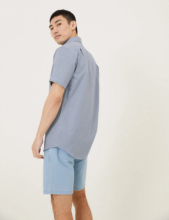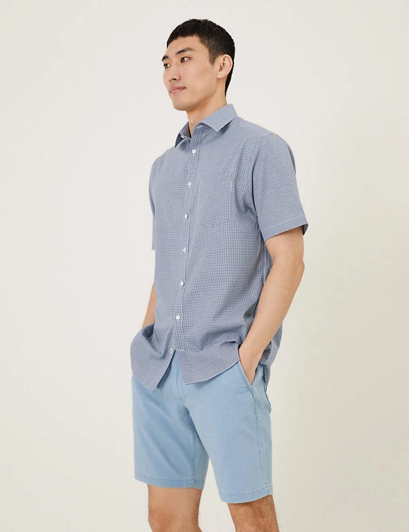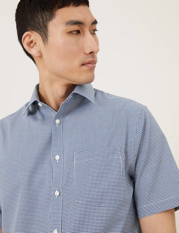 Bring a summery feel to your smart looks with this pure cotton gingham shirt. The short-sleeved style has a regular fit, with a classic collar neckline. Our non-iron finish means you won’t have to worry about creases, even after washing and tumble drying. We only ever use responsibly sourced cotton for our clothes.