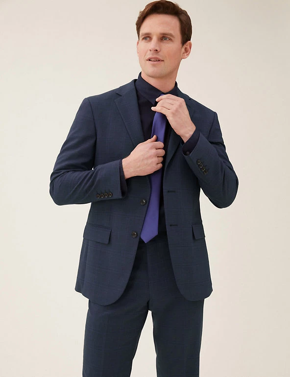 Product Style: Single breasted 2 button, Regular fit, Button fastening, Lined, Vents: Two, Added stretch