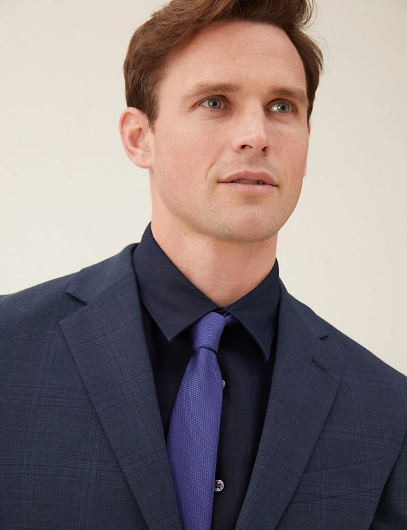 This jacket is made from a luxe wool-rich fabric with a subtle check that lends a refined air. It’s cut in a comfortable regular fit, in a contemporary single breasted style. Added stretch and two vents at the back ensure plenty of freedom to move. The sleeves are finished with four buttons, and flap pockets at the waist take care of your essentials. A contrast lining gives a discreet finishing touch.
