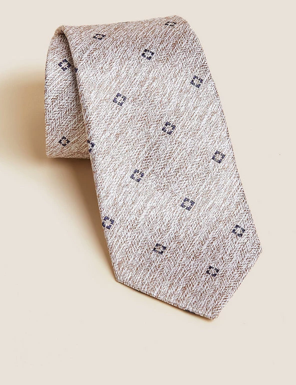 This pure silk tie makes a refined addition to your formal accessories. Modern slim width design. Finished with a timeless mini foulard pattern.