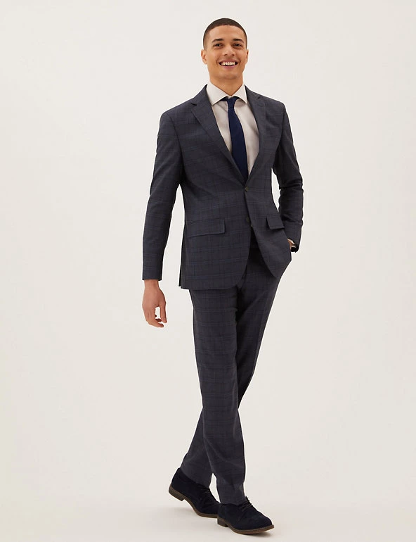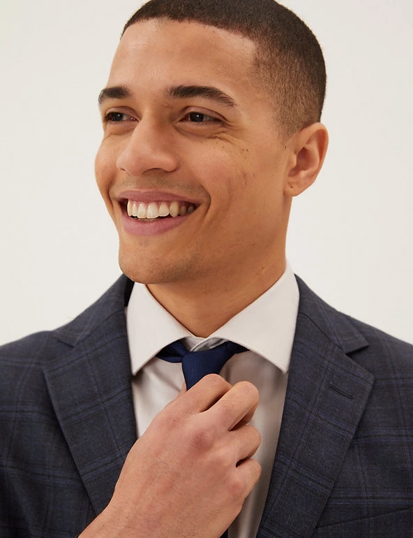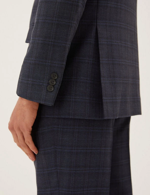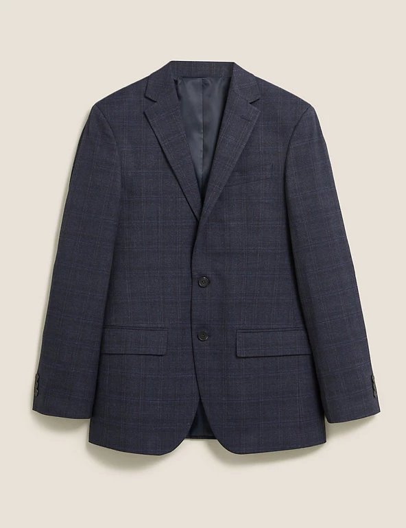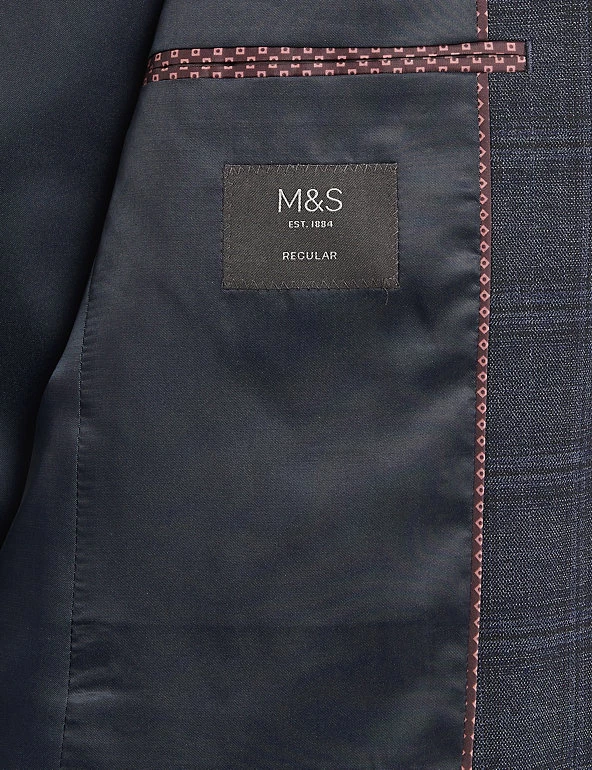 Add a subtle check to your formal look with this suit jacket. It’s impeccably tailored to a classic regular fit, with added stretch to enhance comfort. Front flap pockets and notched lapels create a neat appearance. This single breasted design comes complete with our Buttonsafeâ„¢ technology, which heat-fuses the buttons in place to ensure they don’t fall off. M&S Collection: easy-to-wear wardrobe staples that combine classic and contemporary styles.