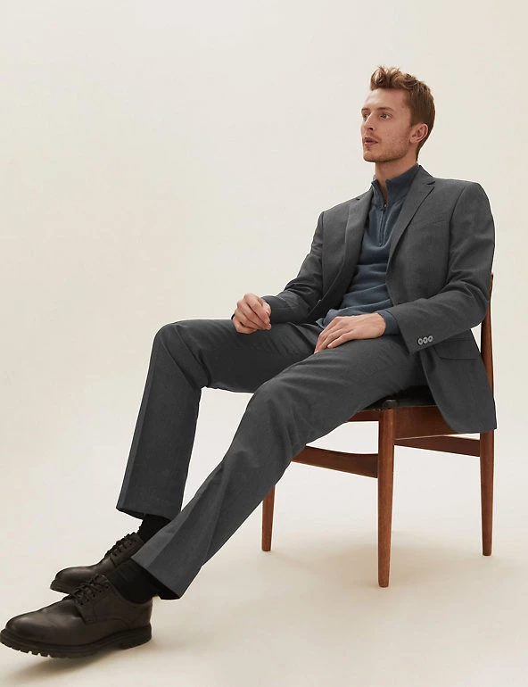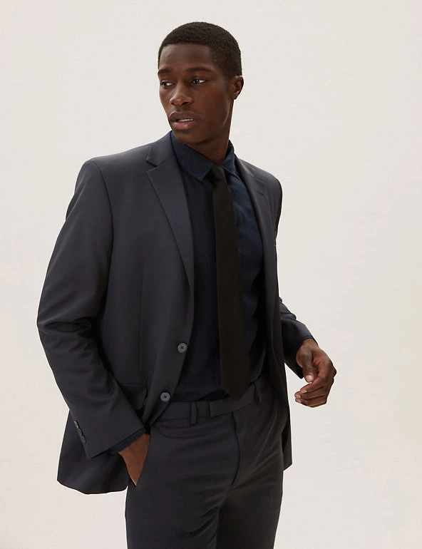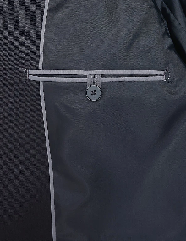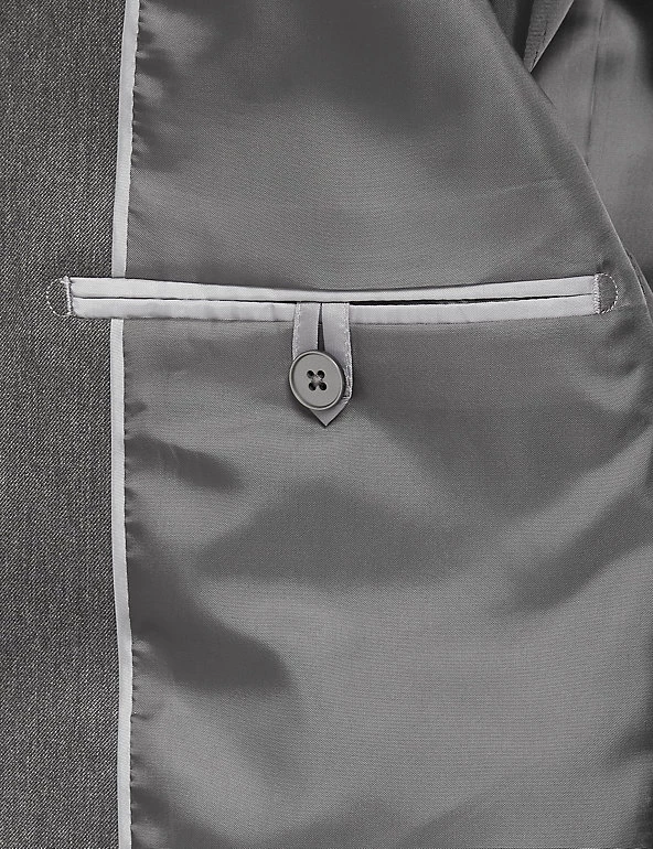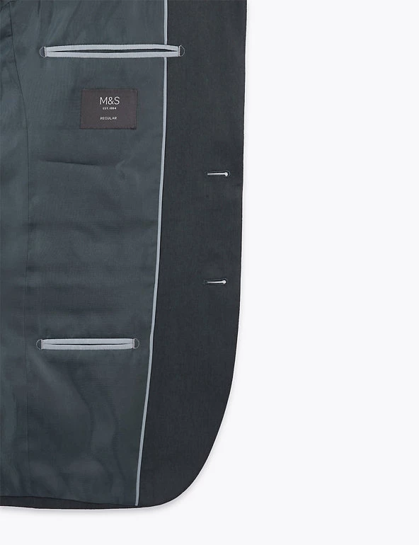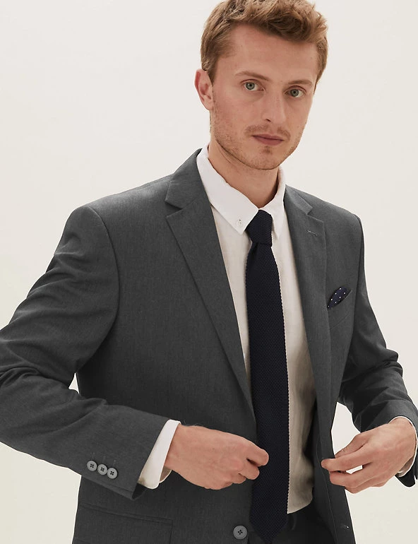 The classic cut of this suit jacket gives your formal look a sharp sartorial edge. Timeless regular fit with a single-breasted front. Features a smooth lining and front flap pockets. Matching trousers are available to complete the outfit.