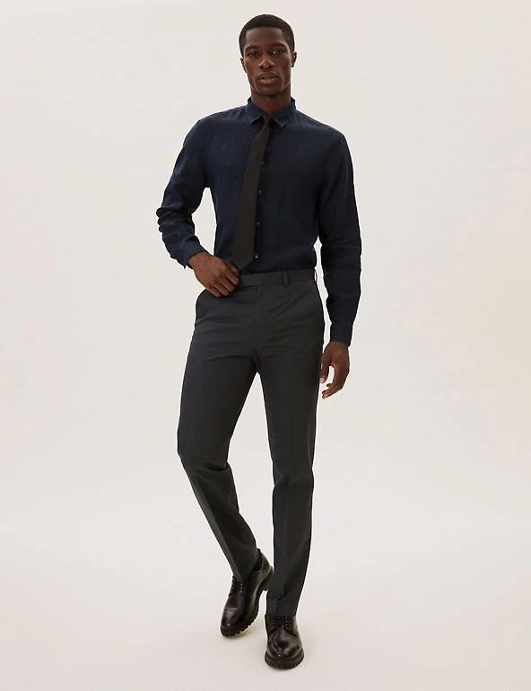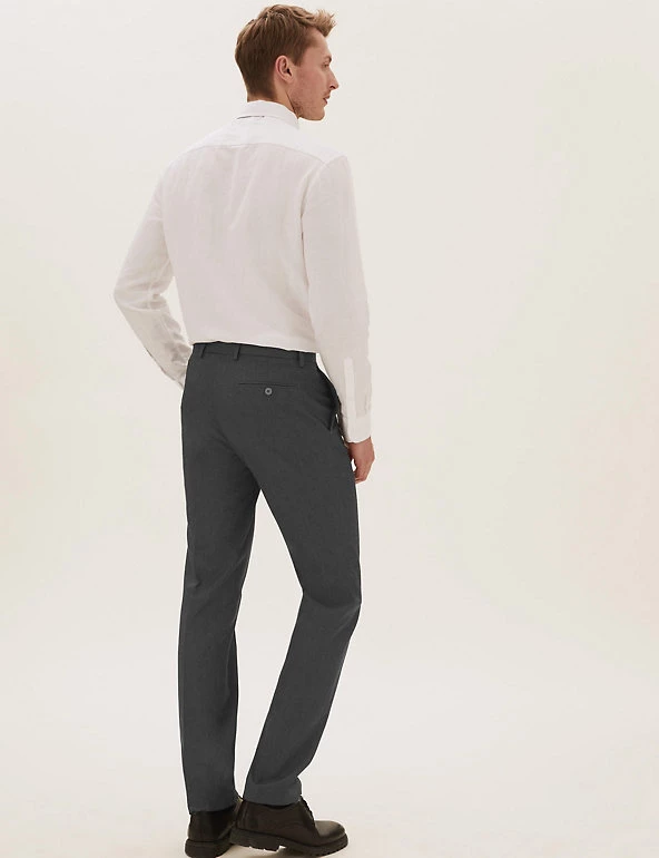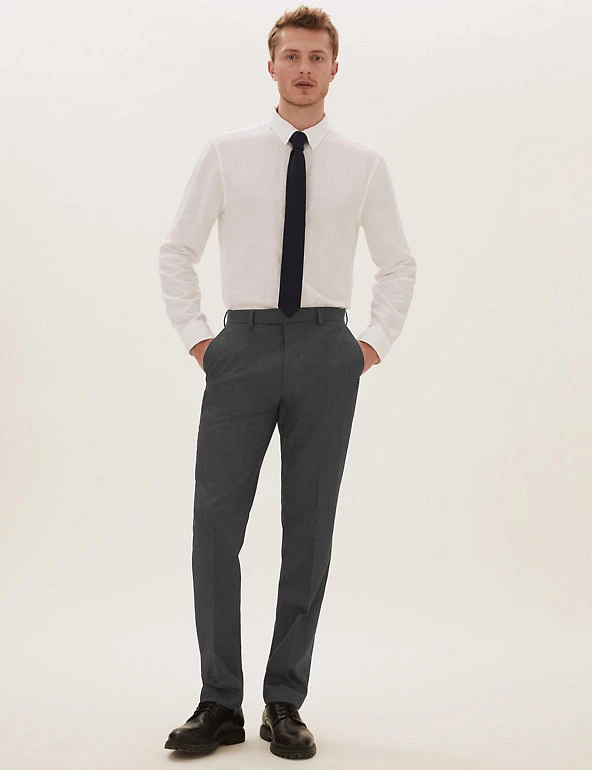Classically styled and crafted with innovation, these trousers are a smart choice for formal dressing. Regular fit, with a flat front and centre-front creases for a polished finish. Made with our Buttonsafeâ„¢ and Hem Safeâ„¢ technology, which helps to keep the buttons and hem secure, wash after wash.
