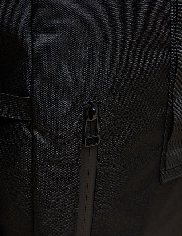This technical backpack is as smart as it is functional. Scuff-resistant Pro-Tect™ fabric, with a Stormwear™ finish to keep out the rain. Ergonomically curved shoulder straps are padded for extra comfort. Additional support strap across the chest. A laptop compartment, inner zipped pocket and bottle pockets at both sides keep your things nicely organised. Webbed loops at the front for extra storage. Made with recycled polyester.