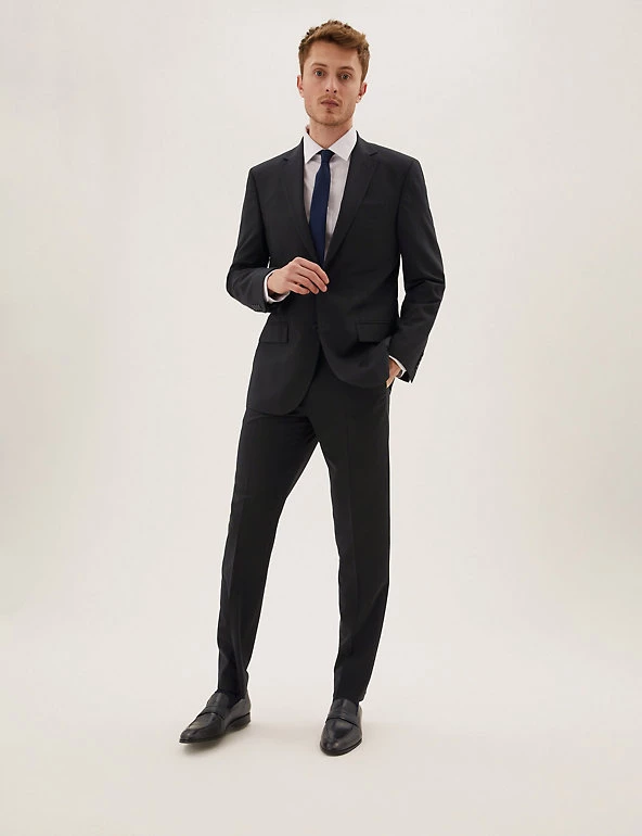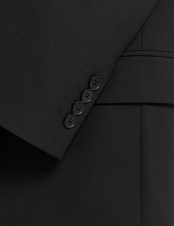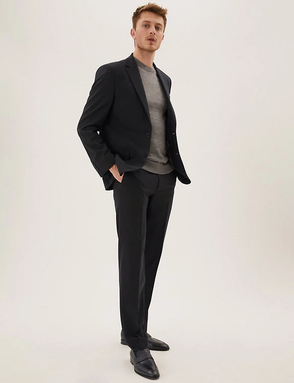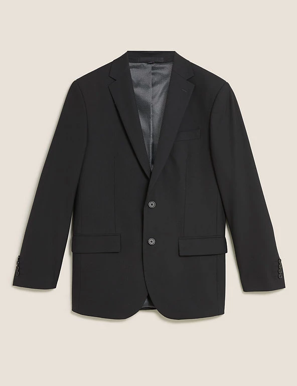 For timeless style, look to this wool-blend suit jacket. Our most generous cut, the regular fit has room in the body and sleeves for extra comfort and a classic look. Details are kept to a minimum with a single breasted two-button front and traditional notched lapels. Added stretch ensures effortless movement, while bounceback technology keeps the fabric crease-free and sharp. M&S Collection: easy-to-wear wardrobe staples that combine classic and contemporary styles.