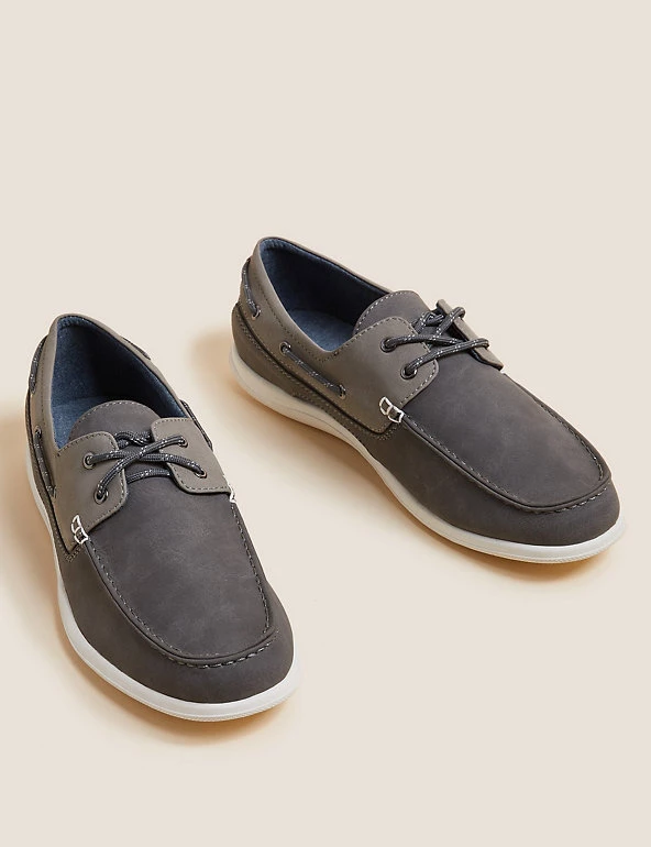 Effortlessly complete a casual look with these deck shoes. Comfy regular fit with a classic lace-up fastening. Soft chambray lining. Gun metal eyelets and webbing on the side add the finishing detail. Freshfeetâ„¢ technology helps to minimise odour for all-day freshness.