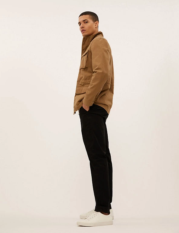 Tap into the utility trend with this pure cotton jacket. It’s made to a comfortable regular fit with a zip and popper fastening. Four front pockets provide ample room for all your essentials. The Stormwearâ„¢ finish will keep you dry during sudden showers.