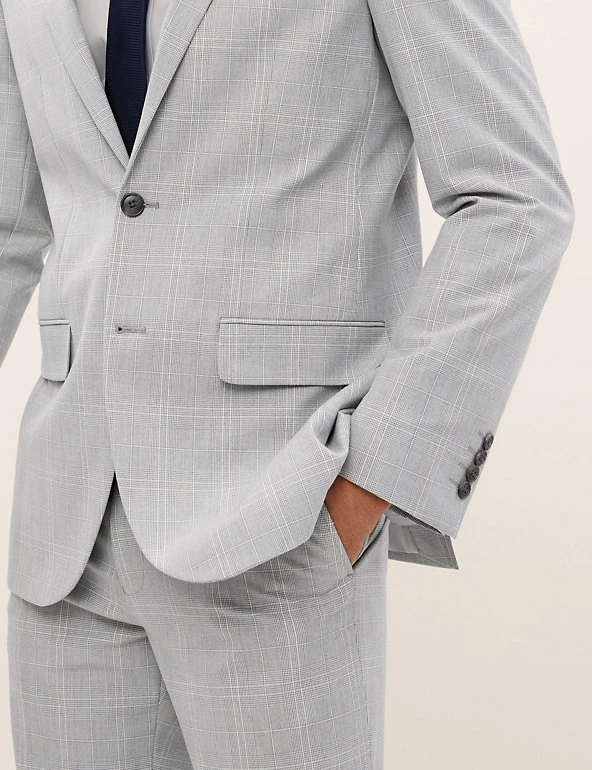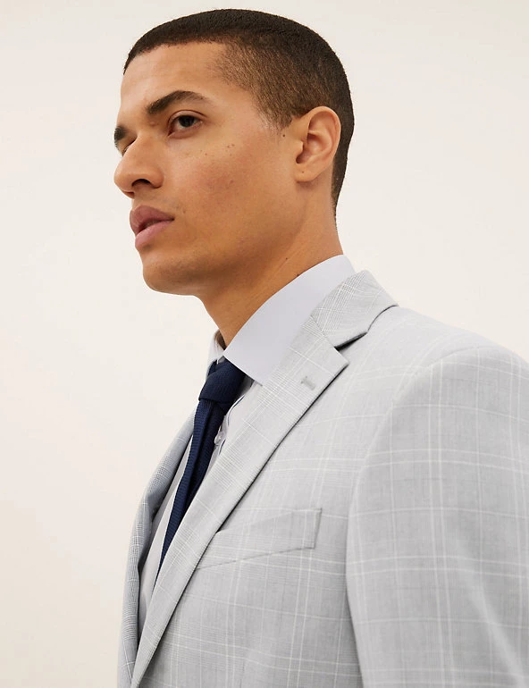 Mix up your formal wardrobe with this smart check jacket. It’s made to a comfy regular fit with 360 Flex fabric that moves with you. The single breasted front is fastened with Buttonsafeâ„¢ buttons that are heat-treated so they won’t fall off. It’s finished with a slanted, jetted pocket and notch lapels.