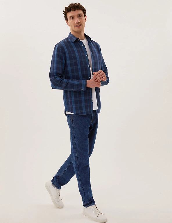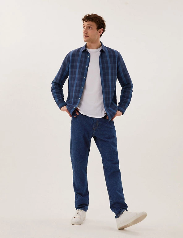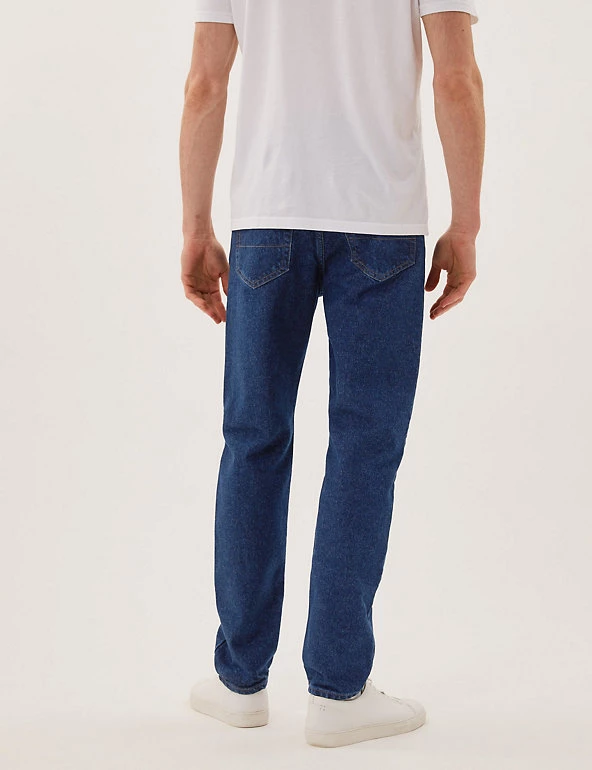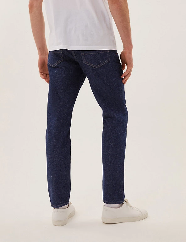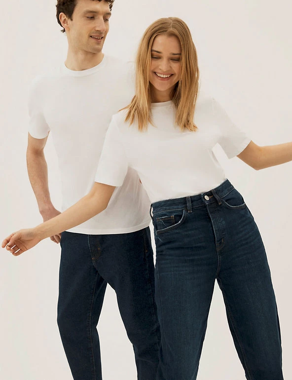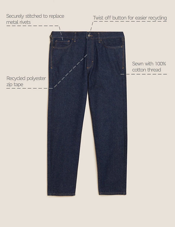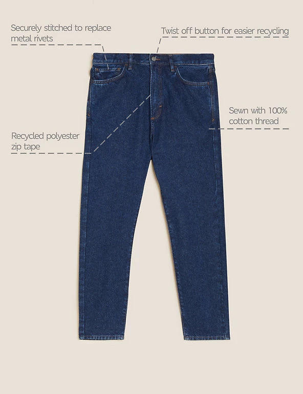 Made from pure recycled cotton, these jeans are a comfy take on a classic. They’re cut to a smart tapered fit and feature two front pockets and a classic button and zip fastening. All M&S denim is made with sustainably sourced cotton and less water. Dyeing with pre-reduced indigo reduces water and chemical use in production.