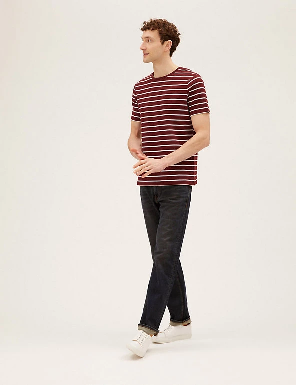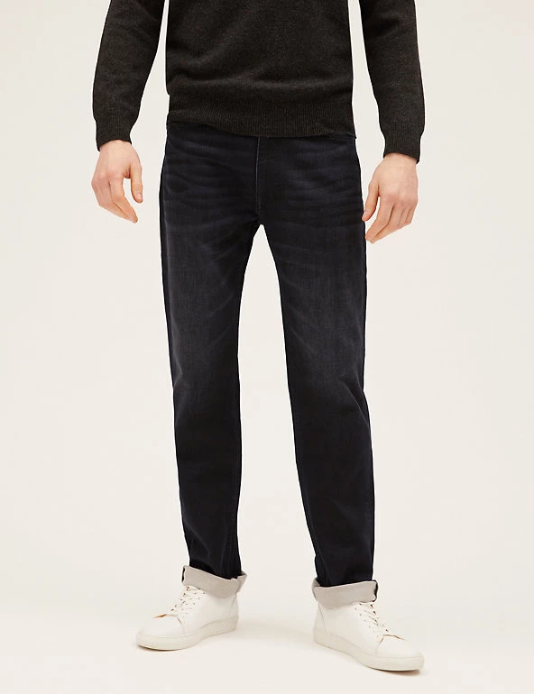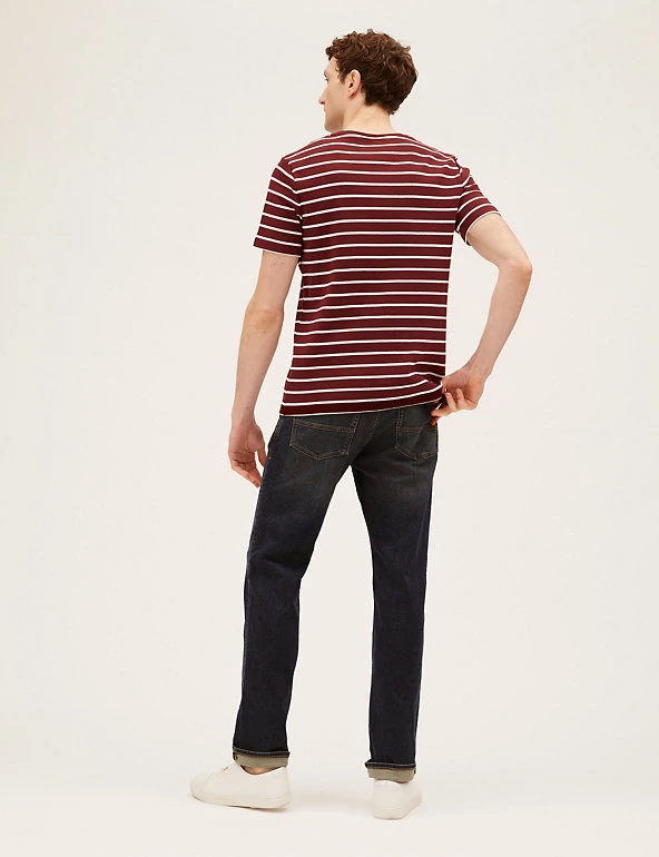 Made from super-soft, cotton rich jersey denim, these jeans are the ultimate comfortable choice. Classic straight fit design with added stretch for flexibility. Made with organic cotton.