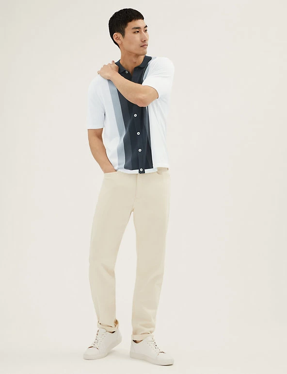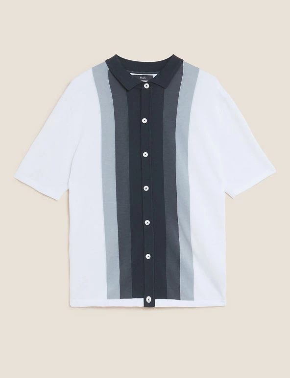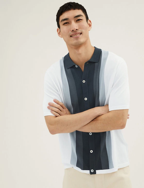 For a smart twist on a casual staple, this cotton-rich polo shirt has been knitted with modal. Classic collared neckline and short sleeves. For stand-out style, it’s finished with a button-through front and graduated vertical stripes. M&S Collection: easy-to-wear wardrobe staples that combine classic and contemporary styles.