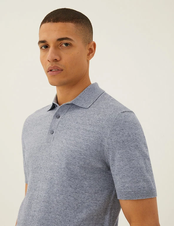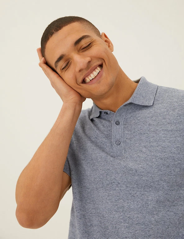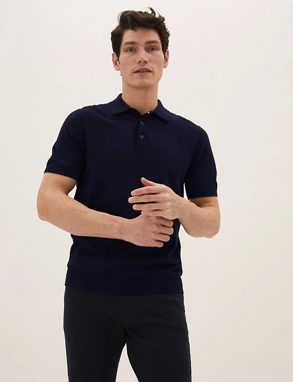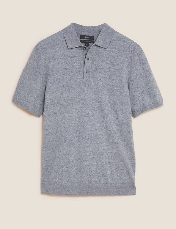 Create a smart-casual look in an instant with this knitted, cotton-rich polo shirt. Short-sleeved design, with a classic collared neck and button-through placket.