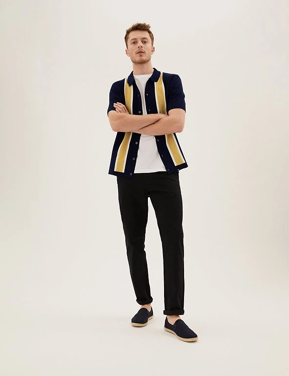 With its eye-catching stripes and classic shape, this cotton-rich polo shirt from our Autograph range is a timeless piece. This knitted button-through style is designed with a smart collar and cool short sleeves. Vertical block stripes down both sides give a distinctive finish.