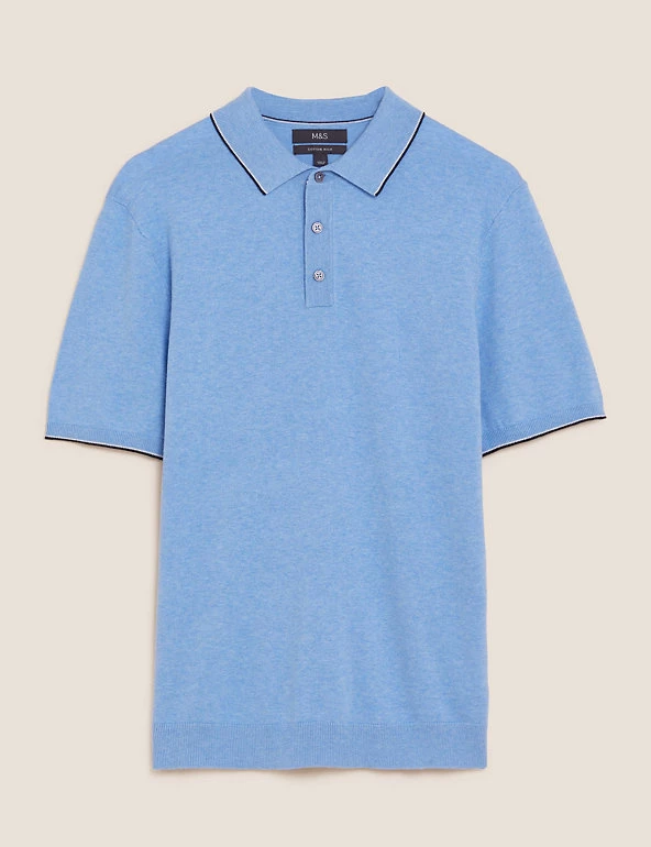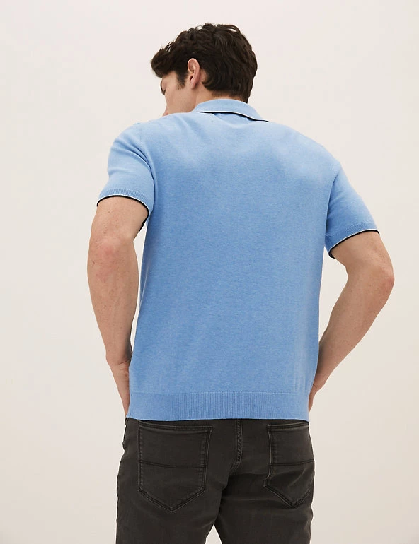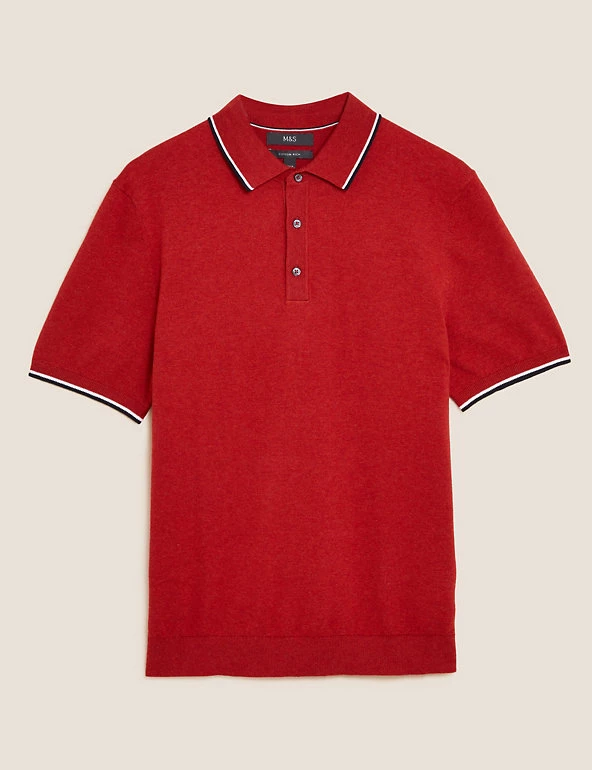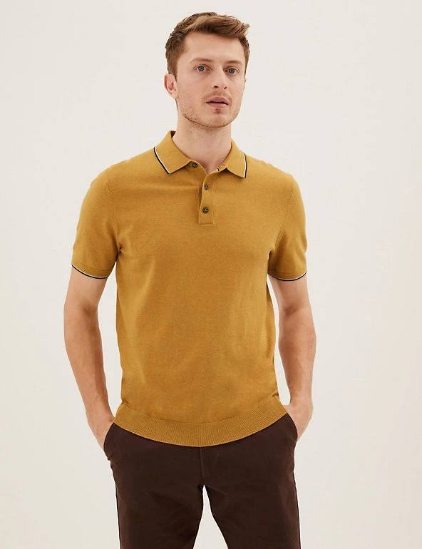 Nothing beats a polo shirt for effortless style, and this cotton-rich design has you covered. It’s knitted with short sleeves for a casual look, plus a smart button-down collar. Contrast tipping gives a sporty finish.
