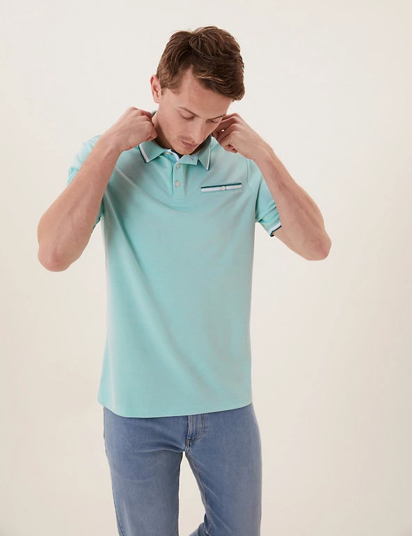 Elevate your casual wardrobe with this polo shirt, made from an ultra-soft modal-rich fabric. Regular fit, with premium touches including side splits for ventilation and tipping on the collar.
