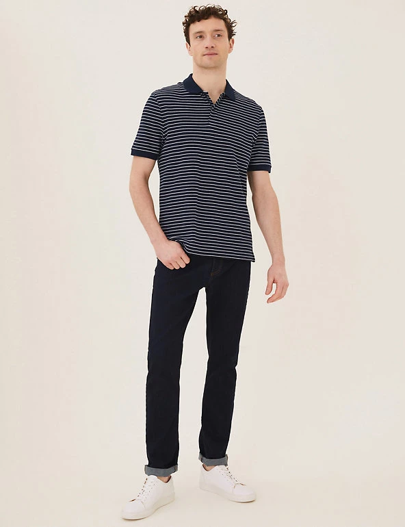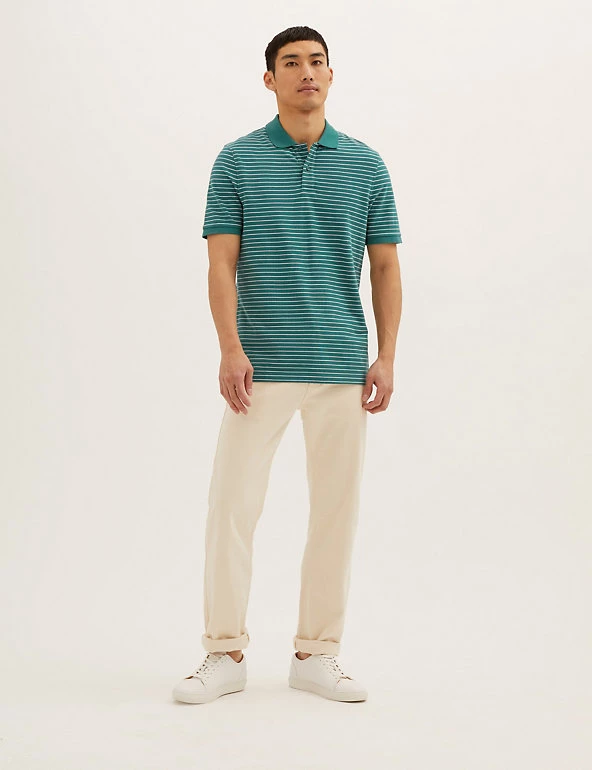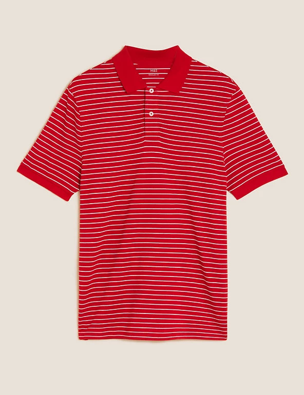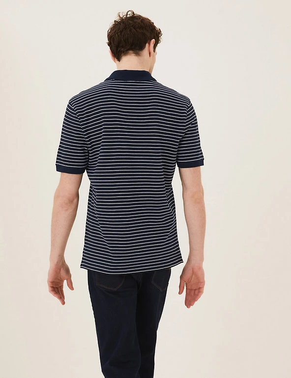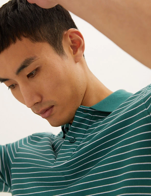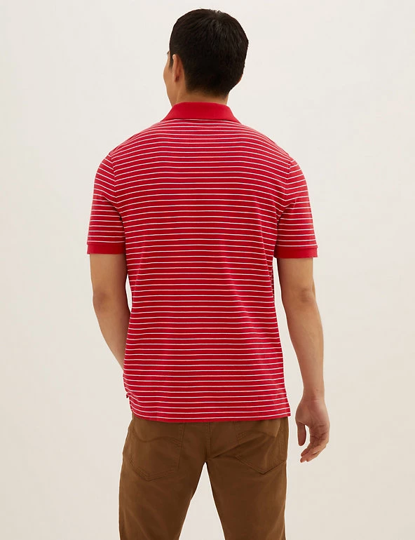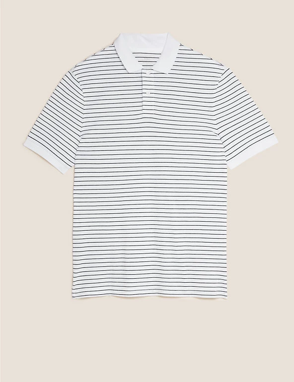 Add a preppy-inspired look to your smart-casual wardrobe with this striped polo shirt. Comfy regular fit. Made from a pure cotton pique fabric with a fine waffle texture. Side splits for ventilation. We only ever use responsibly sourced cotton for our clo