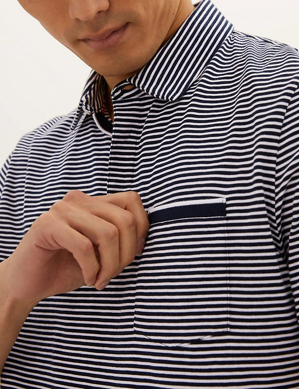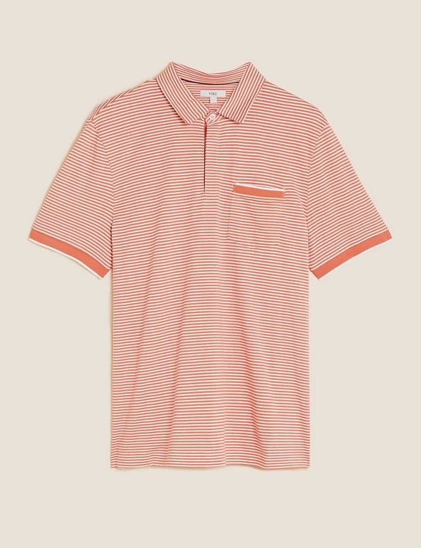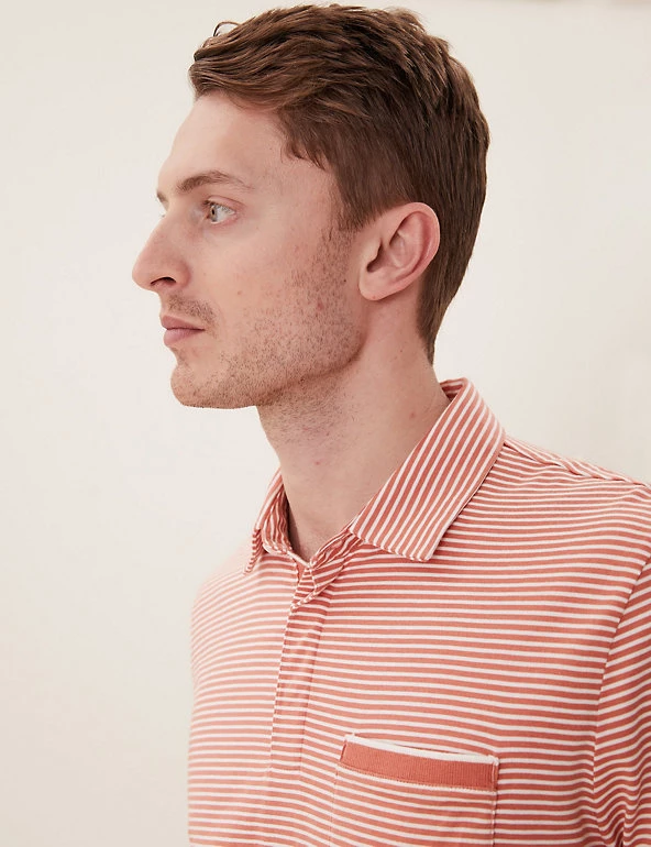 Your casualwear is sorted with this striped polo shirt. Made in a regular fit and crafted from pure cotton jersey fabric for a soft feel. We only ever use responsibly sourced cotton for our clothes.