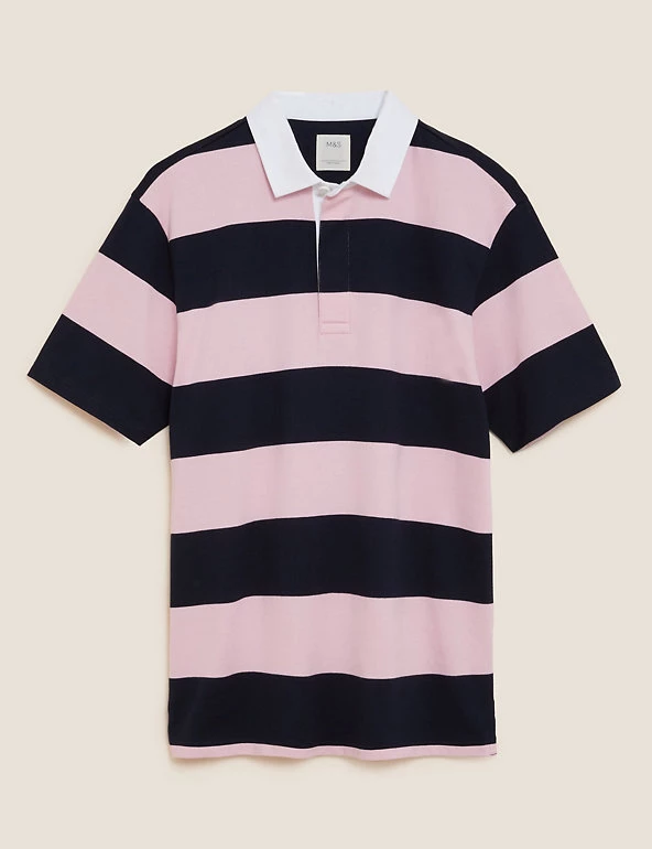 Contrasting block stripes give a sporty feel to this pure cotton rugby shirt. Comfy regular fit, with a classic collared neck and button fastening. Short sleeves add to the laid-back look. We only ever use responsibly sourced cotton for our clothes. M&S C