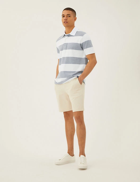 This pure cotton rugby shirt creates the perfect laid-back look. Cut to an easy regular fit. Design includes a classic collared neck, short sleeves and a button fastening for authentic styling. Bold block stripes add a sporty feel. We only ever use respon