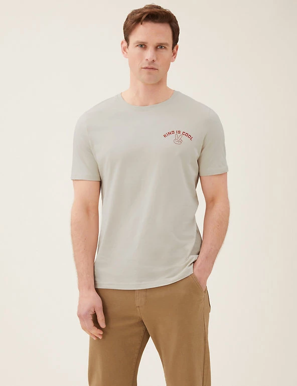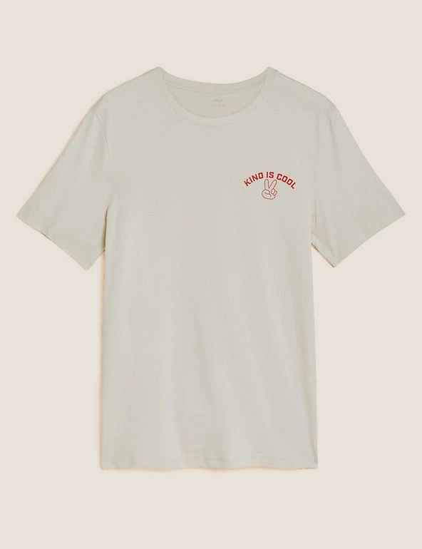 Bring the positive vibes with this pure cotton t-shirt, featuring a small ‘Kind is Cool’ graphic on the chest. Cut in a classic regular fit. We only ever use responsibly sourced cotton for our clothes.