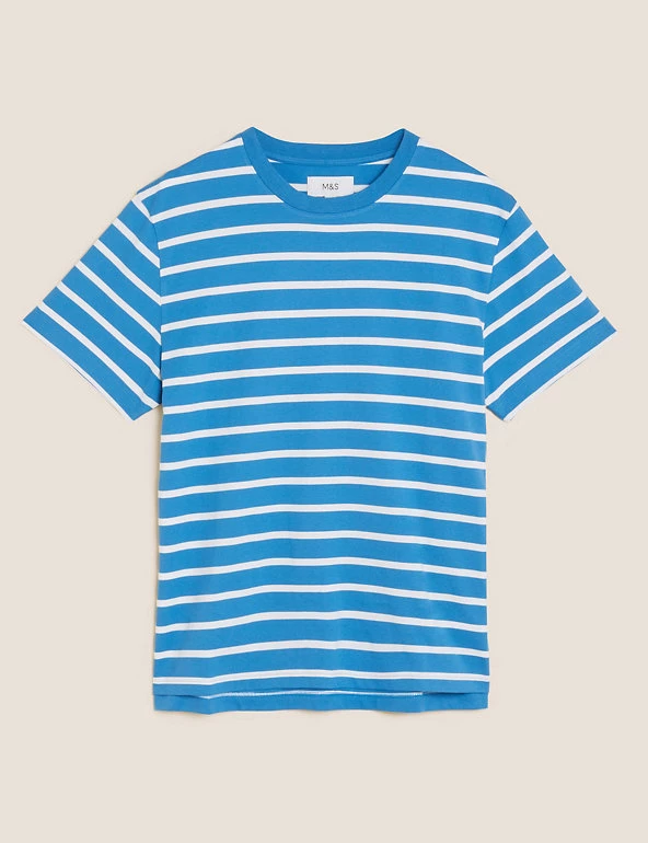 No wardrobe is complete without a striped t-shirt, and this pure cotton style fits the bill. It’s crafted from a heavyweight jersey in an easy relaxed fit. We only ever use responsibly sourced cotton for our clothes.