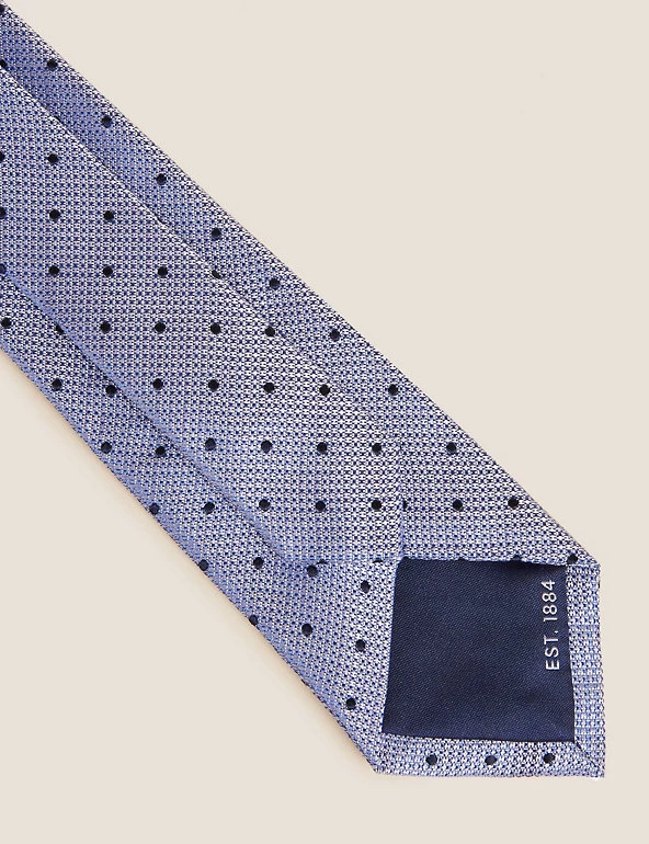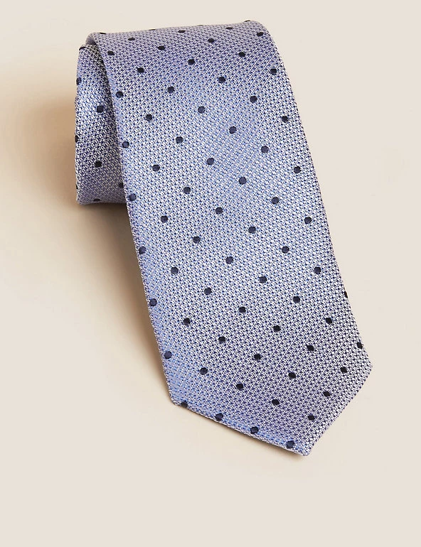 This refined, pure silk tie makes a fine addition to smart ensembles. Modern slim width, featuring a versatile tonal spot print.