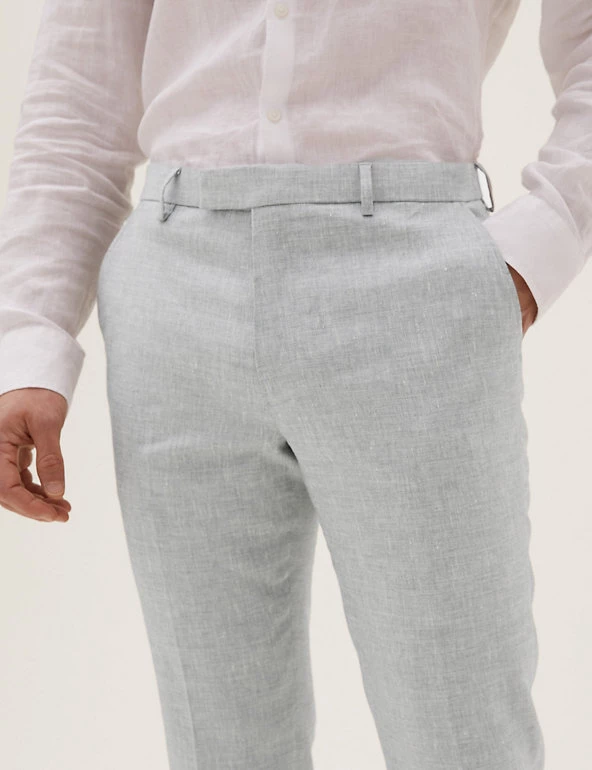 Product Style: Flat front, Tailored fit, Hook bar and zip fastening, Part lined, Trouser Style: Flat front, Linen Miracle™: looks and feels like linen, with crease-recovery