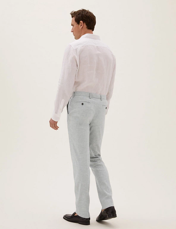 These neatly styled trousers are a perfect choice for formal summer occasions. Part of our Big & Tall range, they’re specially designed to fit and flatter gents with a larger frame and come in a tailored cut for a refined finish. Italian Linen Miracle™ fabric creates the look and feel of linen with outstanding crease resistance. These flat front trousers have added stretch and an active waistband that moves with you for all-day comfort. They’re finished with front and back pockets for your essentials.