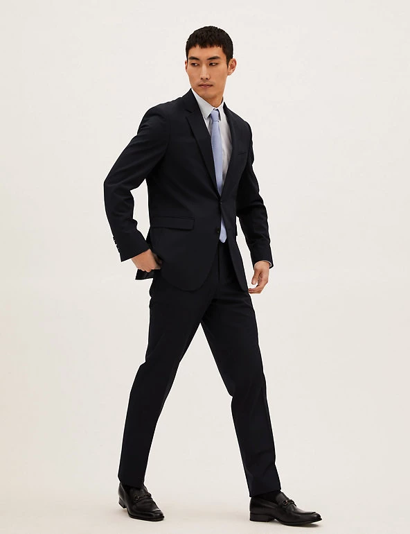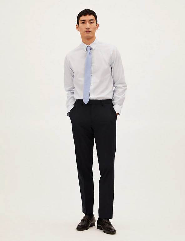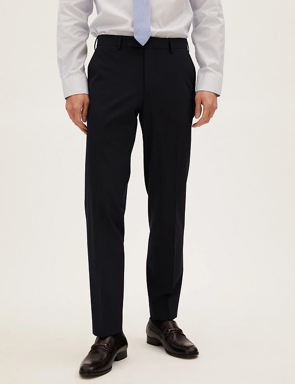 Product Style: Flat front, Tailored fit, Hook bar and zip fastening, Trouser Style: Flat front, Added Stretch