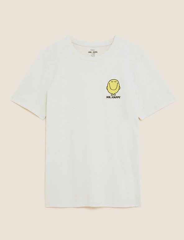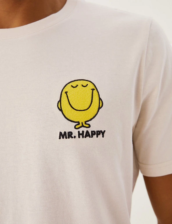 Add a fun element to your off-duty wardrobe with this pure cotton Mr. Men™ t-shirt. Regular fit, with a classic crew neckline. An embroidered Mr. Happy badge on the chest adds a cheerful finishing touch. We only ever use responsibly sourced cotton for our