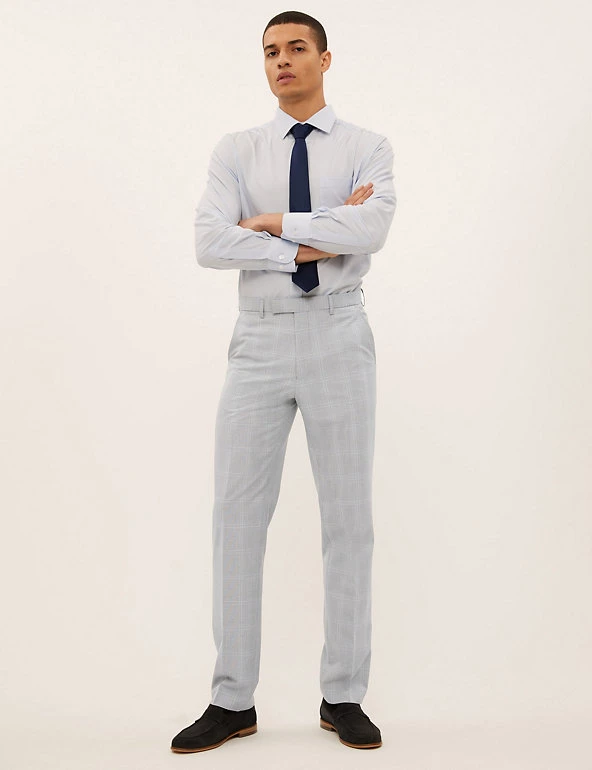 Add dapper style to your formal wardrobe with these checked trousers. They’re made to a regular fit with a sleek flat front and 360 Flex stretch for easy movement. They also feature our clever active waistband, which can expand by up to one whole size for incredible comfort. The look is finished with Buttonsafeâ„¢ buttons, which are heat-treated so they won’t fall off.