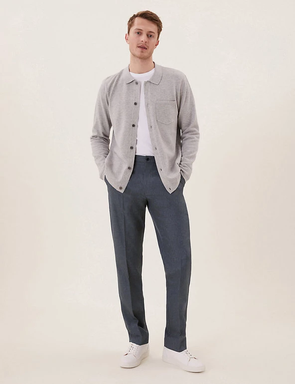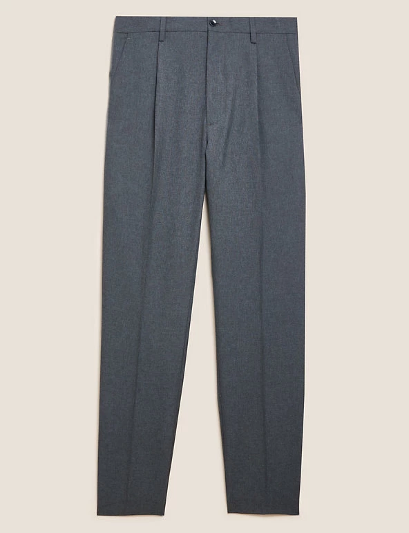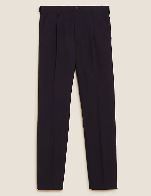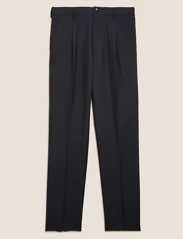 Combine style with comfort in these smart trousers. They have a comfortable regular fit and a single pleat design, with a clever active waistband that moves with you. Crease-resistant properties keep them looking smart all day, while our Buttonsafeâ„¢ technology uses heat-treated buttons that won’t fall off. Made with recycled polyester.