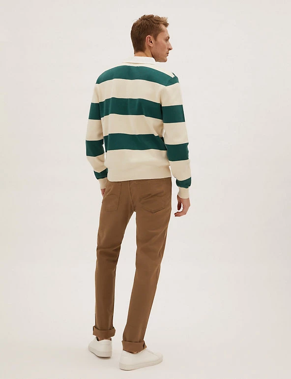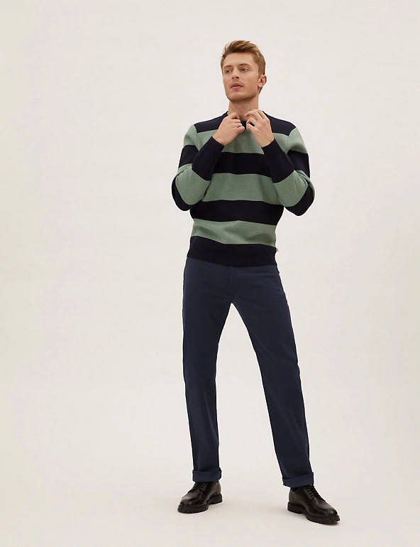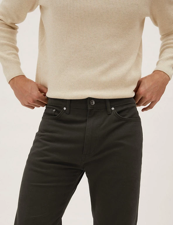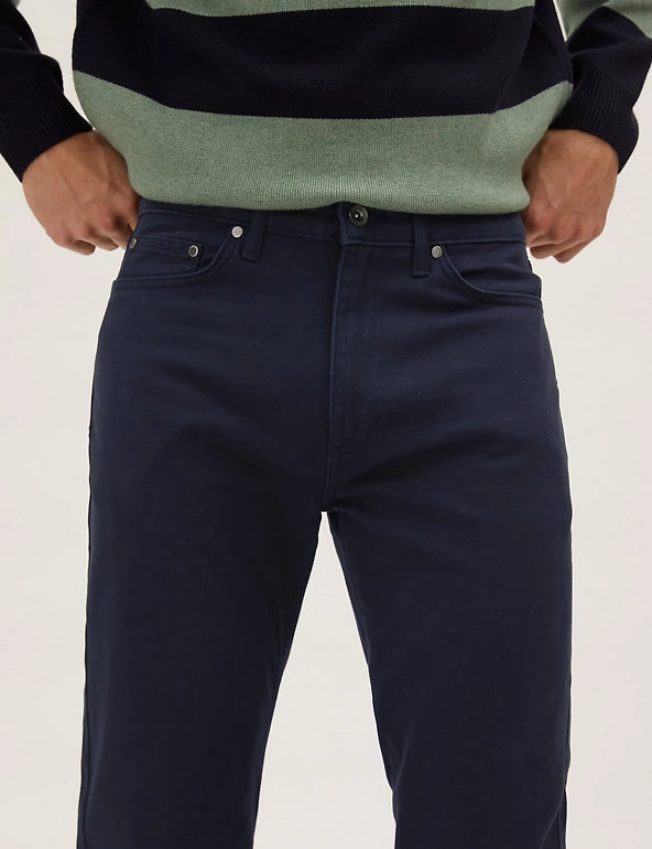 Bring extra flair to your smart-casual collection with these cotton-rich, Italian trousers. Modern straight fit design mixed with added stretch ensures comfort, while the five-pocket styling and a button and zip fastening add traditional detailing. We only ever use responsibly sourced cotton for our clothes. M&S Collection: easy-to-wear wardrobe staples that combine classic and contemporary styles.